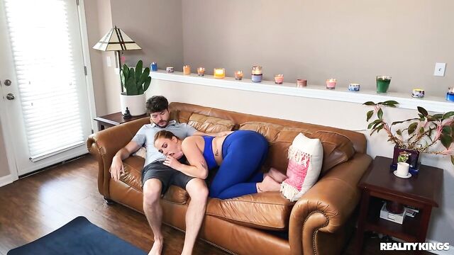 Description: Delivery guy Liam Lilly interrupts curvy redhead Siri Dahl's yoga session when he shows up with a big package for her. He follows her up the stairs, staring at her booty in her tight yoga pants, and Siri notices that it looks like he's got another big package for her in his shorts! The hottie eagerly sucks his cock, then uses a toy on her clit as Liam delivers a deep pounding to her pussy.