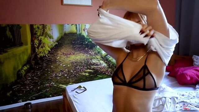 POV passionate sex in the bedroom with a hot girlfriend Dolly Dyson