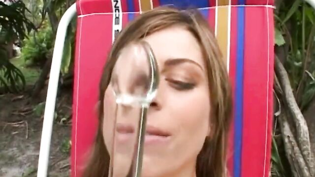 Description: Lily was loving the weather outside, and got super horny. She was relaxing in a chair in her bikini and stripped her top off, and felt up her tits. Then she took her bottoms off and fingered herself. She was loving touching herself. Then a man grabbed her breath for her. After that she pulled out this toy, so she could go deeper. She couldn't get enough. She put the toy in her mouth so she could taste herself too. Then she put the toy back in. So she could feel it deeper and orgasm. She was enjoying herself very much on this beautiful day. There was even a mysterious man.