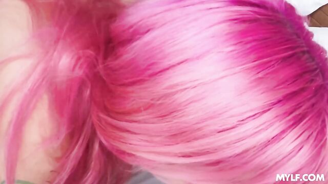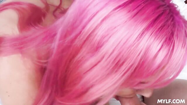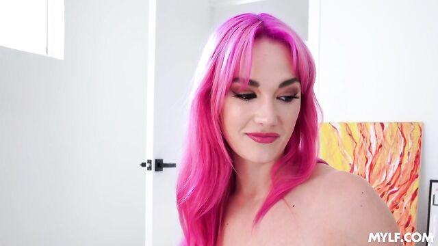 Gorgeous pink-haired hottie Siri Dahl rides on a massive cock