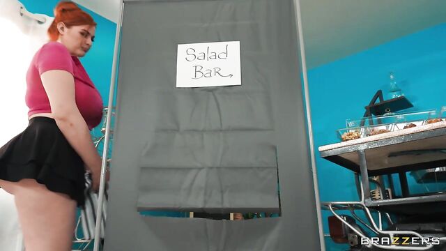 Description: Abigaiil Morris is having a frustrating day at work. When her boss proves to be a jerk, she decides all bets are off. Abagaiil pops her pussy and ass through a hole in a wall in the hopes of giving Kyle Mason the pussy sampling of a lifetime at the salad bar. Siri Dahl discovers her delicious dish and she can’t help but serve herself. Siri takes a big sampling of booty before helping Kyle get in on the sneaky fun.