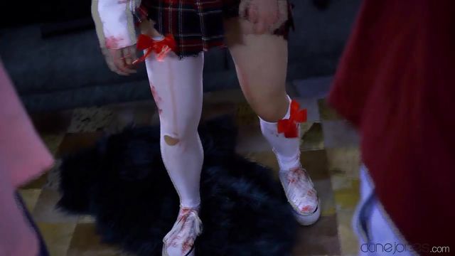 Description:Ricky Rascal and Nick Ross are playing video games in the garage when they hear shambling outside. Checking the door, they see an Asian stunner dressed as a schoolgirl... with a pencil sticking through her nose! They tell her to scram and go back to their game, but the moaning walker enters the house. When Ricky goes to refill his beverage, the zombie teen bites Nick, and when Ricky comes back to fend her off, he gets a bite for his trouble too! Now that they're all zombies, Yiming craves more flesh, so she gets on the couch, pulls up her skirt, and spanks her ass enticingly. Nick and Ricky shamble over and take their dicks out, and Yiming sucks them both off at the same time. Taking turns fucking her tight pussy and pretty face, Nick and Ricky cover Yiming in cum, then go back to their game... before they turn!