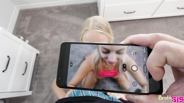 Description:Braylin Bailey is super jealous that her friends have been selling nudes online and making big bucks. She has finally figured out a way to get in on the action. All she needs is cooperation from her stepbrother, Jay. She wants Jay to act as the photographer as she shows off her tight body with her busty chest and luscious curves. Jay resists at first, but Braylin offers him a 30% cut. That's a pretty good deal for recording his stepsister getting naked, so Jay tells her that if they get caught it's on her and then carries out his end of the bargain.Watching Braylin do a striptease is a huge turnon for Jay. He can't hide his boner for long. Unsurprisingly, Braylin notices. She tells Jay they can make even more money if there's dick in her shots. After a bit more negotiation, Jay agrees to let Braylin suck him off and then fuck him for the camera. He snaps photos of her popping his stiffie out of his boxers and going to town sucking it. Braylin demonstrates to Jay that she's a total ho for the D, sucking him down in a deep throat BJ that gets him even more excited. When they move to the bed, Braylin once again swears that they're gonna make big bucks once they upload this to the Internet before going back to sucking her stepbro off.Since Jay is on his back anyway, Braylin wiggles out of her shirt and then hops aboard for a stiffie ride. He gets a view of her incredible ass as she bounces away on his fuck stick. Turning around, Braylin gives Jay the full body view with her lovely boobs and bare twat to record as she spreads her thighs and goes back to work. Braylin knows that she needs to have plenty of different positions to really make it big, so she gets on her hands and knees to take a pussy pounding in doggy. That gives her the perfect chance to reach back and spread her ass cheeks for a great view of her anus. Flipping onto her back, Braylin puts her lovely tan lines on display as Jay gives it to her one last time before he pulls out and nuts all over her stomach. Braylin is all smiles, knowing that she's going to be a star and make tons of money with Jay's help.