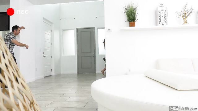 Description: Stepdad catches Sophia sneaking in after going out all night. She sucks and fucks her stepdad to keep him quiet.