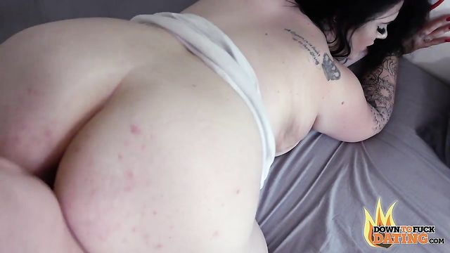 Description: Curvy brunette Anastasia XXX and her date fuck in an apartment bedroom and he cums in her mouth