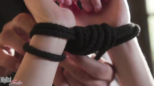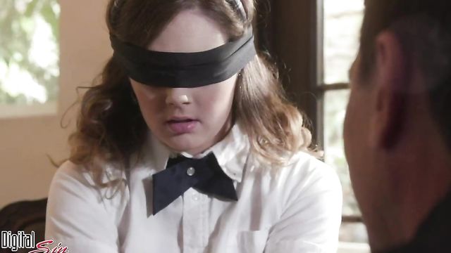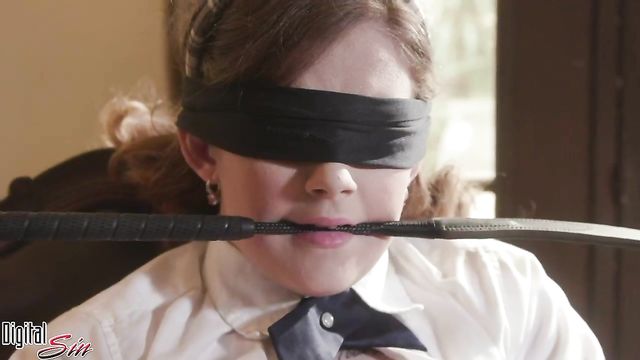 Submissive blindfolded brunette Devon Green is enjoying dick-riding so much