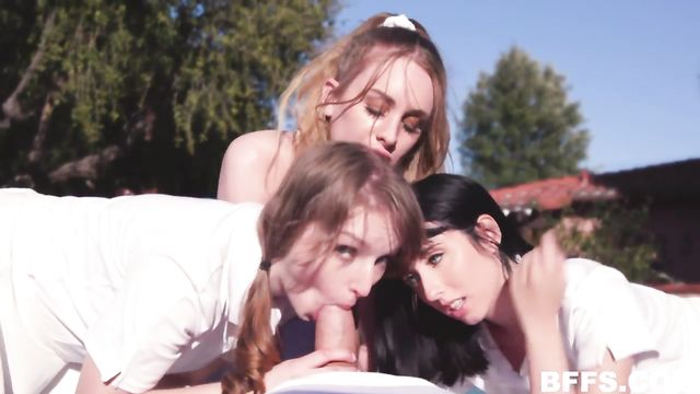 Description:Cleo Clementine, Daisy Stone, and Daphne Dare may be besties, but that does not mean they are not competitive. Today, they are getting a tennis lesson from a stud they all want to fuck, and the claws come out right away. Each of the girls has a great excuse for why they need some extra attention from the tennis pro, and when he realizes what is going on, he knows just how to fix it. He assures them there is enough to go around as he whips out his fat racket and lets the girls get to work to suck and lick his shaft. Then he pounds their juicy pussies and hits every angle on the court. Finally, the thirsty girls share a gooey load, and the team building exercise is complete. They are sure to win the championship of taking hard dick.